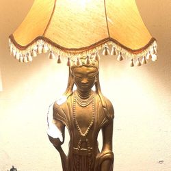 Antique Tall Standing Burmese Buddha Lamp 45” tall (3ft 15inches) 59” tall with shade Has damage to arm but can be repaired. $120Palo Alto, CA