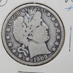 Barber Half Dollar 1909 New Orleans 50 Cents Silver Coin$100San Francisco, CA