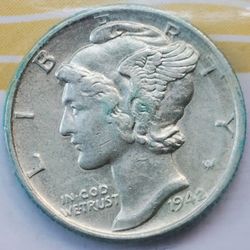 10 Cents Silver Mercury Dime Coin 1942$25San Francisco, CA
