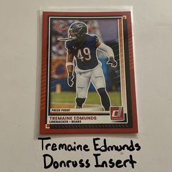 Tremaine Edmunds Chicago Bears LB Donruss Short Print Insert Card.$10San Jose, CA