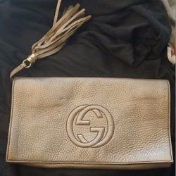 Gucci Soho Clutch Bag Metallic Gold Leather Interlocking G Tassel Authentic$419Pleasanton, CA