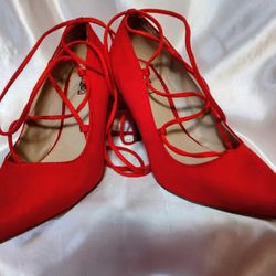 Brash Red High Heels Size 7W Lace Up Pointed Toe Stiletto Pumps Womens Dress Shoes Party Evening$30Richmond, CA