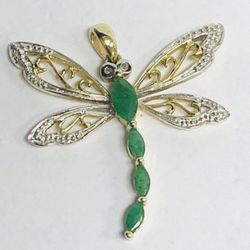 10kt Dije De Oro Sólido Libélula(Dragonfly) Con Esmeraldas$285Richmond, CA