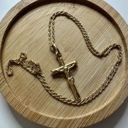 18K Authentic Yellow Gold Chain With Religious Cross Pendant $398Fremont, CA