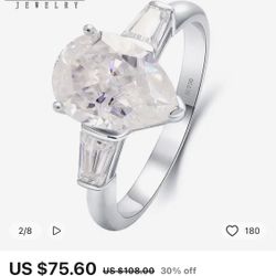 Moissanite Pear 3 Stone Ring Size 7 Silver$65San Jose, CA