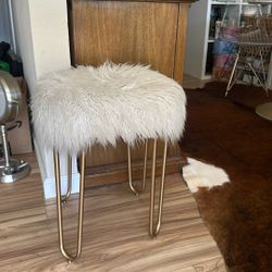 Only One Left – White Faux Fur Vanity Stool with Gold Legs – Glam Accent$58Concord, CA