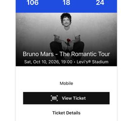 1 Bruno Mars Oct 10 Levi Stadium Concert Ticket$775Fremont, CA