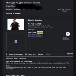 Two GA Tickets for Gabriel Iglecias (2/15)$650Mountain View, CA
