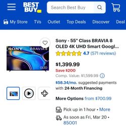 55 “ Sony Smart 4K BRAVIA 2 MK2 LED 2025 Model TV$399Moreno Valley, CA