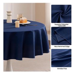 Navy Blue Round Tablecloths 90 Inch - Circle Bulk Linen Polyester Fabric Washable Table Cloth Cover for Wedding Reception Banquet Birthday Party Buffe$5Riverside, CA