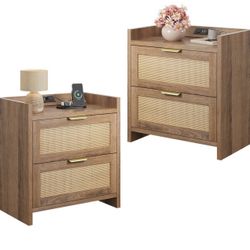 Night Stand Set of 2 - Rattan Nightstands with Charging Station, 2 Rattan Drawers - Boho Bed Side Tables End Table for Small Space - Natural Oa$130Murrieta, CA
