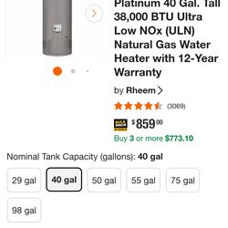 Rheem 40g gas water heater.. brand new in box$599Hemet, CA
