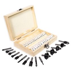 15PC Router Bit Set, 1/4" Shank With Wooden Case, Tungsten Carbide Router Bits For Woodworking