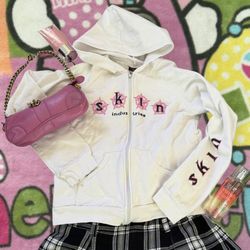 Y2K Skin Industries Dual Sided Graphic White Pink Hoodie Logo Spell Out Women’s$120Mentone, California