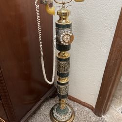 VTG Brass & Marble Pedestal Rotary Telephone 39” Ornate Taiwan ROC Works Display $350Moreno Valley, CA