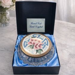 Hand Cut Lead Crystal Trinket Box Needlepoint Lid Tyrone England w/ Box$35Menifee, CA