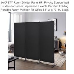 Jaxpety Black Room Divider 88" W x 73" H, Black $50Riverside, CA