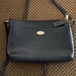 Coach Bleeker Legacy Black Leather Signature Tan Canvas Shoulder Bag Buckle$50Temecula, CA