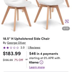 Platina Side Chair White D3639W-20$300Moreno Valley, CA