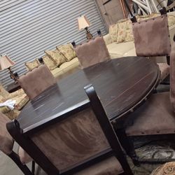 Walnut Wood Dining Table + 6 Chairs $675Riverside, CA