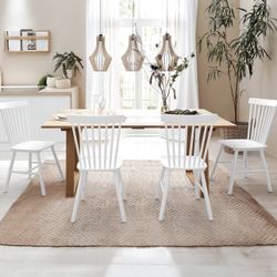 LUE BONA 4PC 18" White Windsor Dining Chairs Set, Spindle Back Wood Dining Chair, Sturdy Solid Hardwood Construction, Easy Assembly, Ideal for Kitchen$140Murrieta, CA