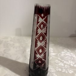 Bohemian ruby red cut-to-clear crystal glass vase.$60Loma Linda, CA