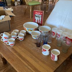 Coca Cola, collection, collectible, vintage. Dishes, bowls, glasses, mugs and silverware.$65Hemet, CA