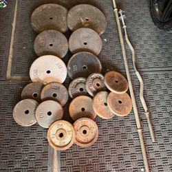 Olympic weights 110lbs total with Olympic curl bar Firm $100Moreno Valley, CA