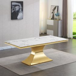 Marble Dining Table - Contemporary Gold Pedestal White Marble Top$900Beaumont, CA