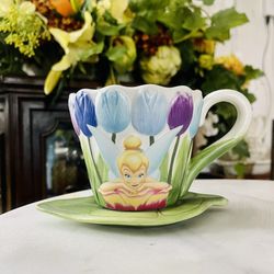 Disney Store Tinkerbell Tea Cup Mug and Leaf Saucer Fairies Tulips 2 Piece Set$40Loma Linda, CA
