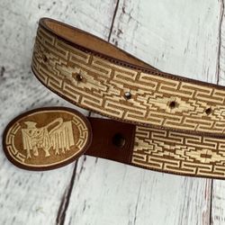 MEN’S 34 Brown LEATHER Embroidered Cinto Piteado MADE IN MÉXICO Belt$23Moreno Valley, CA