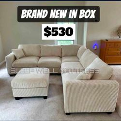 Brand New White Corduroy Sectional Sofa W Ottoman $699Moreno Valley, CA