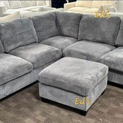 Grey Corduroy Sectional With Storage Ottoman And Pillows Included Brand New In Box Firm Price $449 Assembly Required $449Moreno Valley, CA