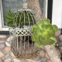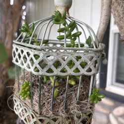 Decorative Hanging Metal Birdcage With Mix Of Succulent Plants Growing Inside, Hanging Plants Bird Cage 16” H X 7” W$15Riverside, CA