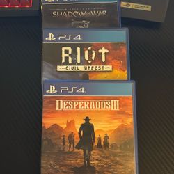 Desperados 3/Riot Civil Unrest/Shadow of War 3 PS4 Games$25Palm Springs, CA