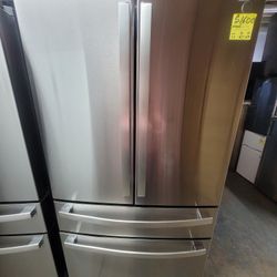 SAMSUNG BLACK STAINLESS STEEL BESPOKE + FAMILY HUB 4 DOOR FLEX REFRIGERATOR/ DENTS $950Highland, CA