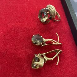 Smoked Stone 14 Karat Gold Earrings And Ring $500Beaumont, CA