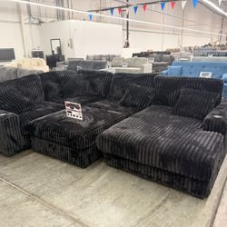 NEW LARGE U Shape Sectional Sofa Chenille Fabric Black Dark Grey Modern and Chaise Lounge and Ottoman Set Big SALE Ashley Style Modular Clearance $799Riverside, CA