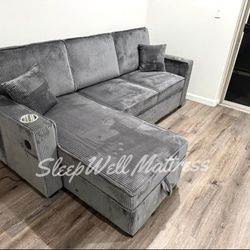 Corduroy Sleeper Sectional Sofa With Storage Chaise $589Riverside, CA
