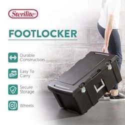 Sterilite Footlocker Stackable Storage Bin with Latching Lid Wheels and Handle Plastic Rolling Container Black$30Palm Springs, CA