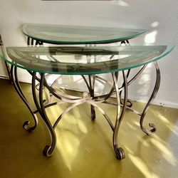 2 GLASS AND IRON HALL TABLES $150Desert Hot Springs, CA