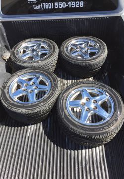 Five spoke Chevy wheels 16'' inch lots of rubber$250Desert Hot Springs, CA