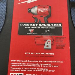 Milwaukee M18 18V Lithium-Ion Brushless Cordless 1/4 in. Compact Impact Driver$100Riverside, CA