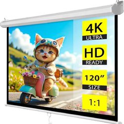 120'' Projector Screen Manual Pull Down, 1:1 Indoor Outdoor Projection Screen Moive Screen, Retractable Video Screen for Home Theater Office (120'' Wh$55Riverside, CA