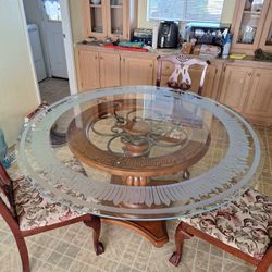 Round Wood Glass Top Dinning Table W/ Chairs$55Perris, CA