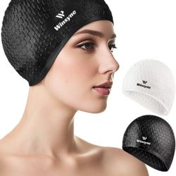 2 Pack Unisex Silicone Swim Cap for Women Men, Large Size Swimming Caps for Long Hair/Braids to Keep Hair Dry, Waterproof Bathing Caps for Swimming wi$10Alta Loma, CA