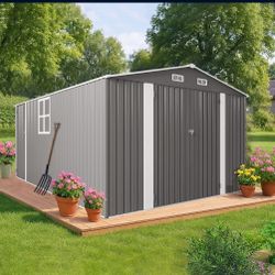 10X8FT Outdoor Steel Storage Shed with Clear Window, Lockable Doors, Weather-Resistant Metal Tool Shed for Garden, Backyard, Patio, and Utility Storag$450Redlands, CA