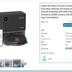 lydsto W2 edge 8000pa robot vacuum mop$99Alta Loma, CA