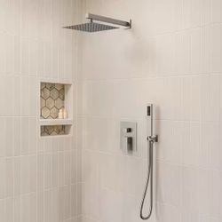 Single-Handle Rain 2-Spray Square Wall Mount 10 in. Dual Shower Head Fixed and Handheld Shower Head 2.5 and 1.8 GPM$70Upland, CA