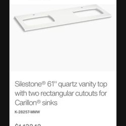 New KOHLER Silestone® 61" quartz vanity top with two rectangular cutouts for Carillon® sinks